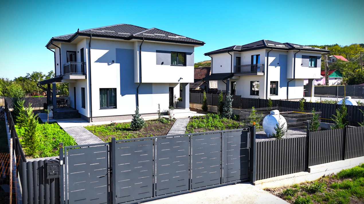 Proprietatea dispune de 4 locuri de parcare pavate, curte individuală împrejmuită cu gard modern și 2 porți de acces.