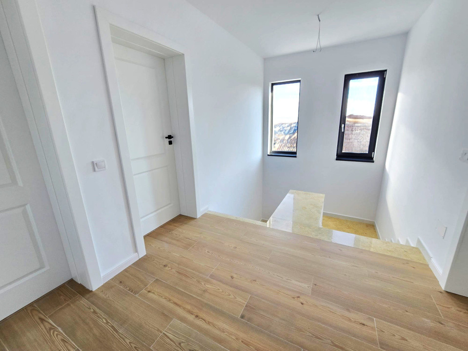 Vilă individuală nouă P+M, construită în 2025, situată în zona Lețcani, pe un teren de 650 mp, cu acces de pe stradă asfaltată și iluminată, aproape de stația de transport public.