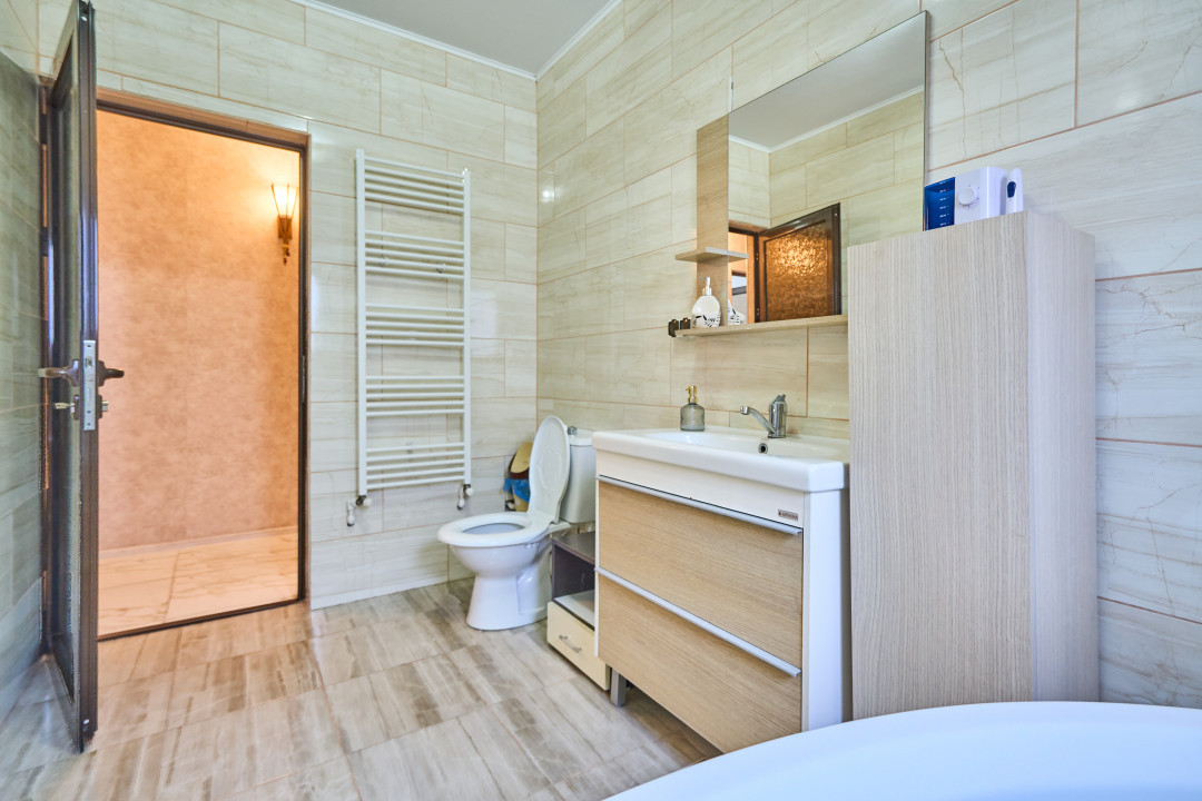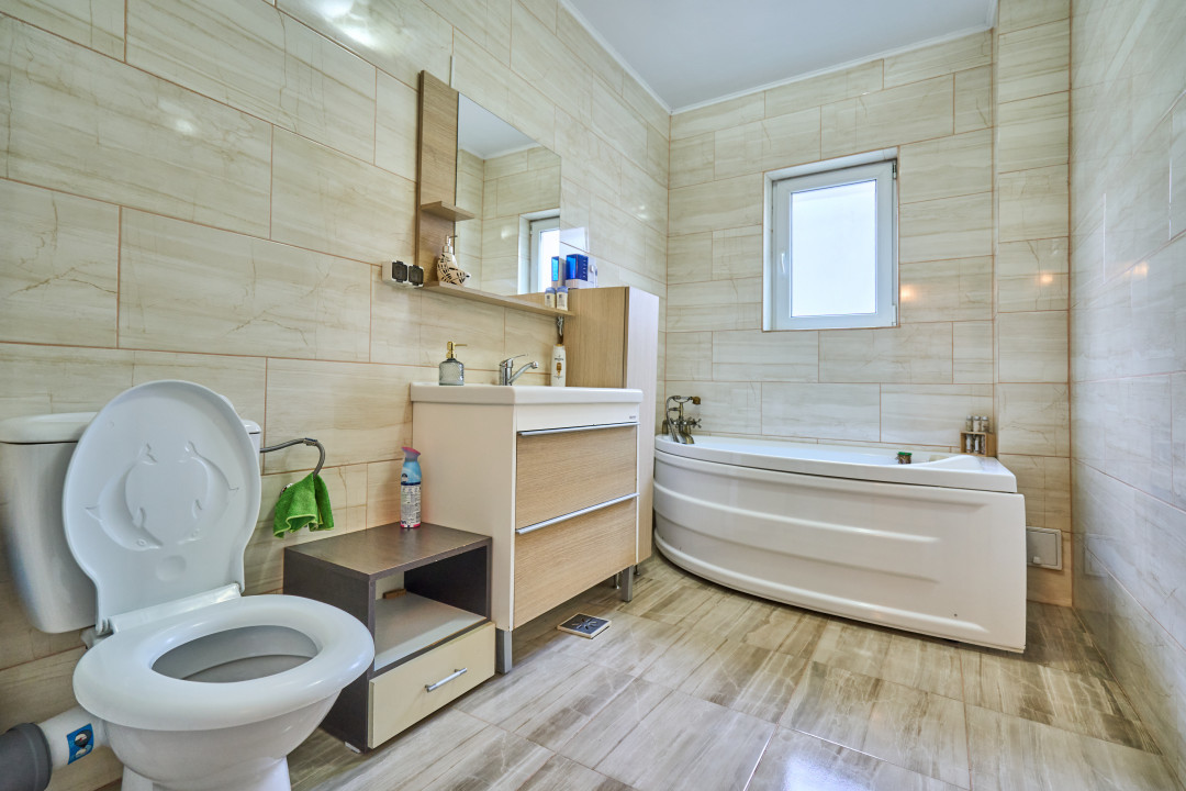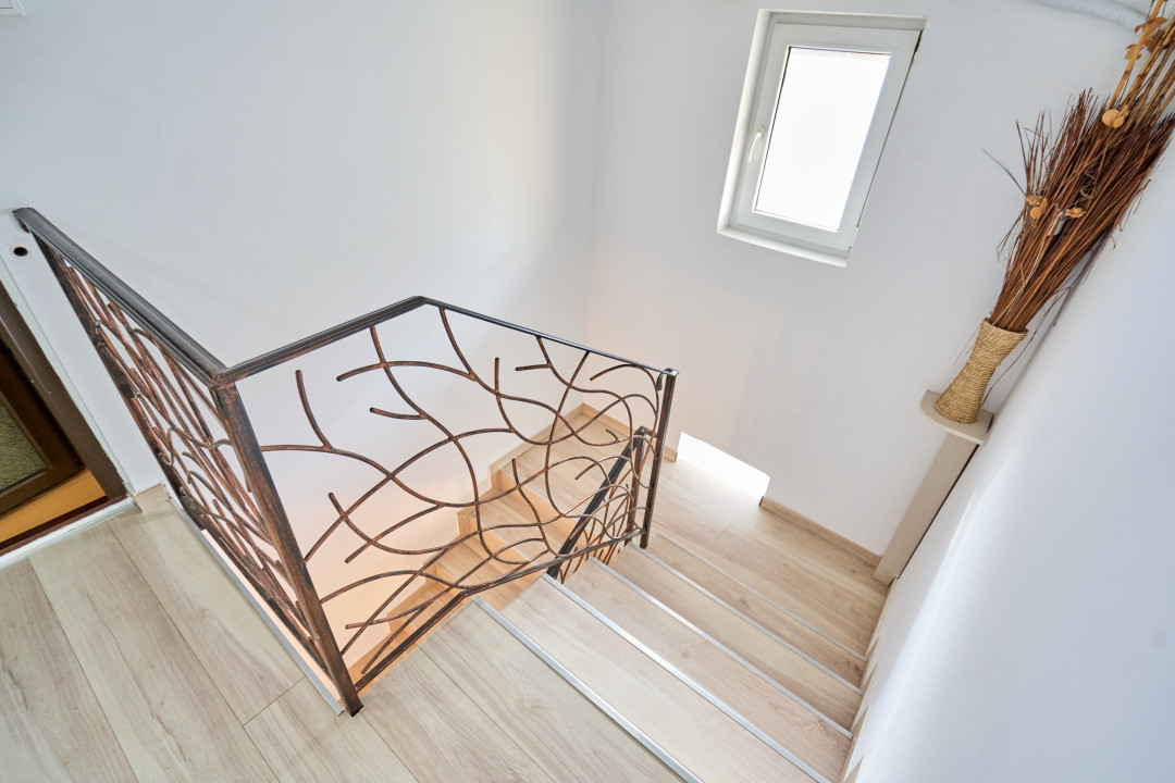 Etajul casei vă întâmpină cu trei dormitoare frumos amenajate și o baie modernă echipată cu o cabină de duș cu hidromasaj. Balconul de la etaj vă oferă priveliști uimitoare ale grădinii și ale împrejurimilor. Aici, veți găsi liniștea și pacea de care aveți nevoie pentru a vă relaxa și a vă bucura de momente liniștite.