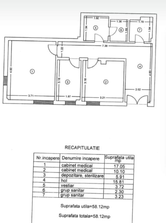 Spațiul are o suprafață de 58 mp și este compartimentat eficient pentru activitate medicală, fiind ideal pentru clinică de recuperare medicală, fizioterapie, kinetoterapie sau alte servicii medicale.